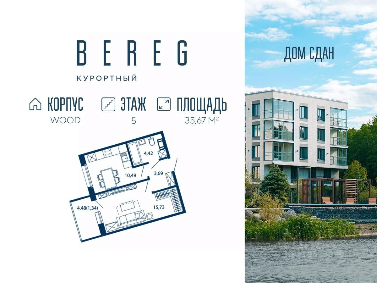 Апартамент 596 площадью 35,67 кв.м. в корпусе Wood с видом на улицу