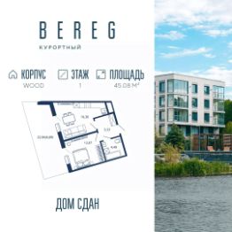 Апартамент 604 площадью 45,08 кв.м. в корпусе Wood с видом на улицу