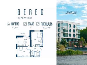 Апартамент 400 площадью 60,12 кв.м. в корпусе Aqua с видом во двор и на улицу