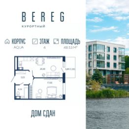 Апартамент 403 площадью 48,53 кв.м. в корпусе Aqua с видом во двор
