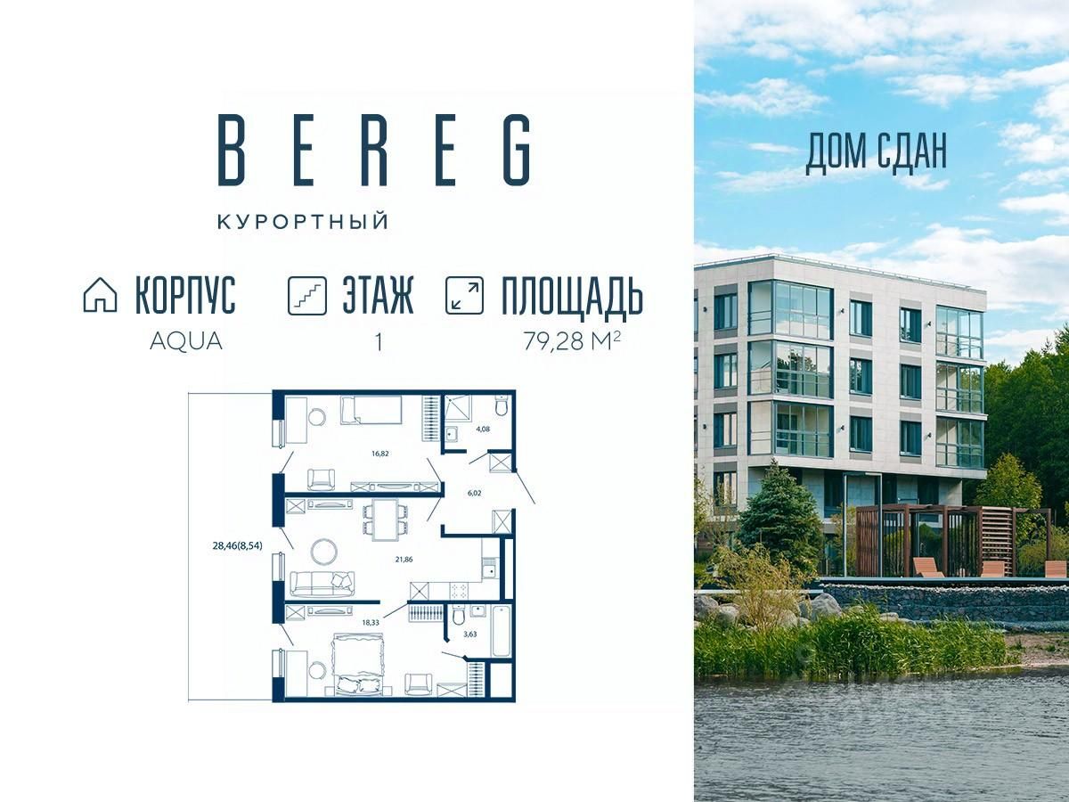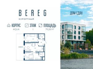 Апартамент 422 площадью 79,28 кв.м. в корпусе Aqua с видом во двор