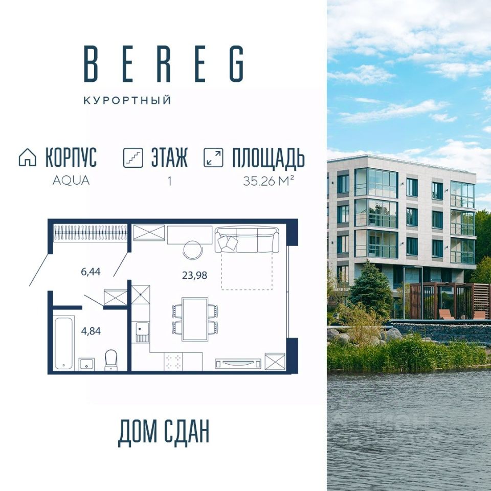 Апартамент 427 площадью 35,26 кв.м. в корпусе Aqua с видом во двор