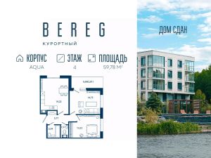 Апартамент 464 площадью 59,78 кв.м. в корпусе Aqua с видом во двор и на улицу