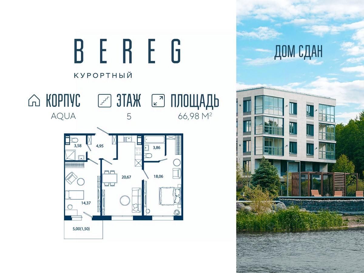 Апартамент 470 площадью 66,98 кв.м. в корпусе Aqua с видом во двор