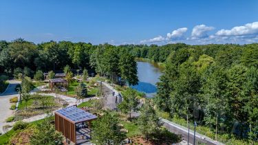 Рядом расположен в лесопарке;