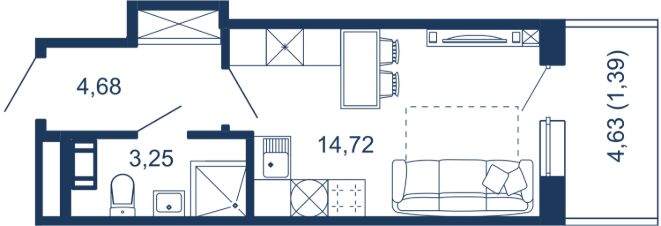 Апартамент 194 площадью 24,04 кв.м. в корпусе Air с видом на улицу