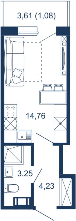 Апартамент 214 площадью 23,32 кв.м. в корпусе Air с видом во двор