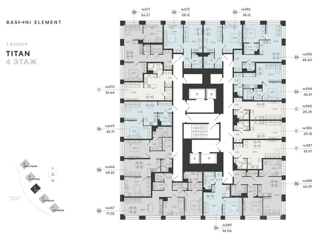Квартира 668 в корпусе Титан проекта бизнес-класса "Башни Элемент".