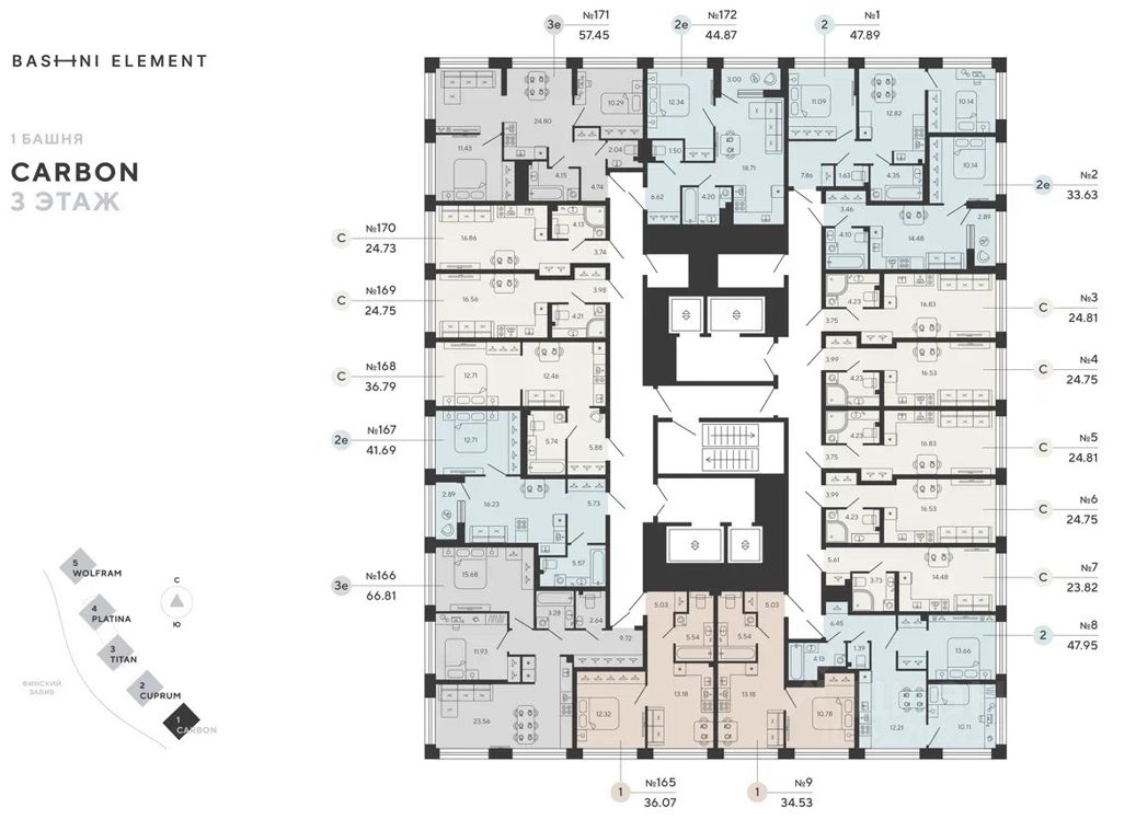 Квартира 3 в корпусе Карбон проекта бизнес-класса "Башни Элемент".