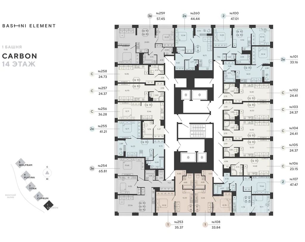 Квартира 100 в корпусе Карбон проекта бизнес-класса "Башни Элемент".