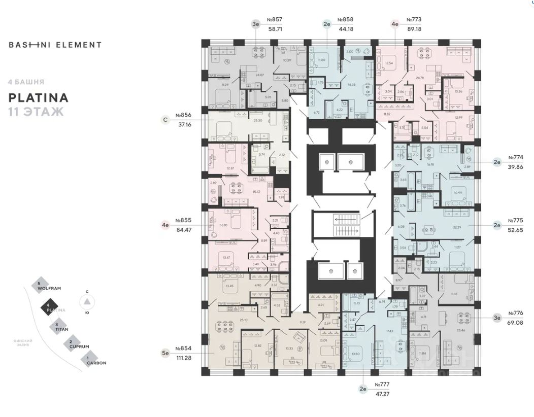 Квартира 777 в корпусе Platina проекта бизнес-класса "BASHNI ELEMENT"