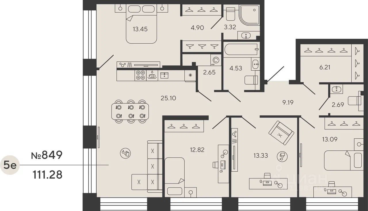 Квартира 849 в корпусе Platina проекта бизнес-класса "BASHNI ELEMENT"
