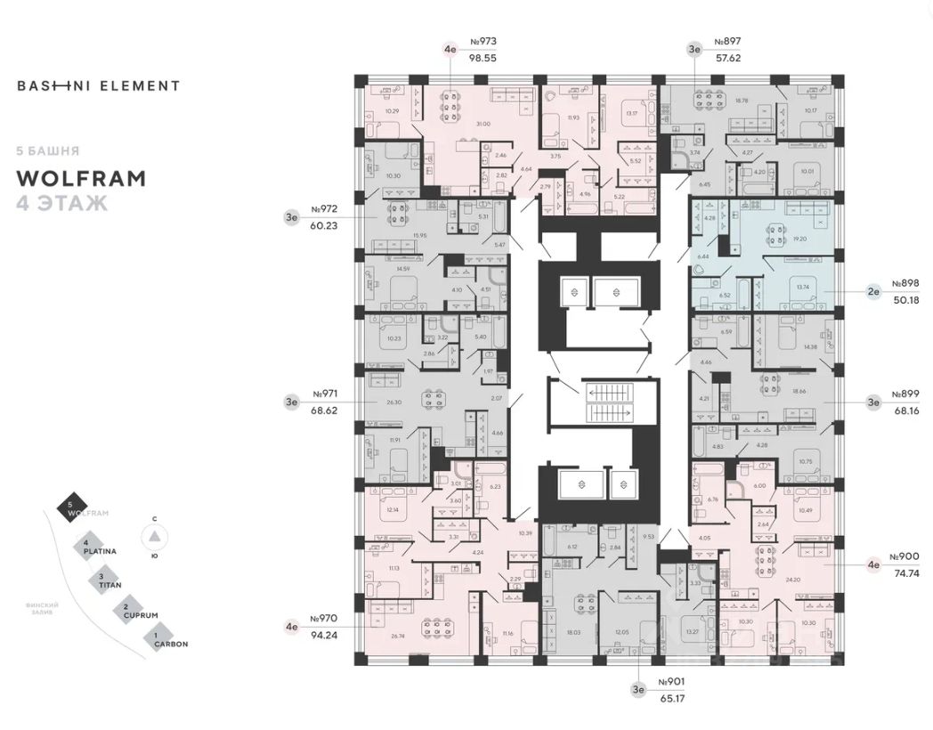 Квартира 973 в корпусе Вольфрам проекта бизнес-класса "Башни Элемент".