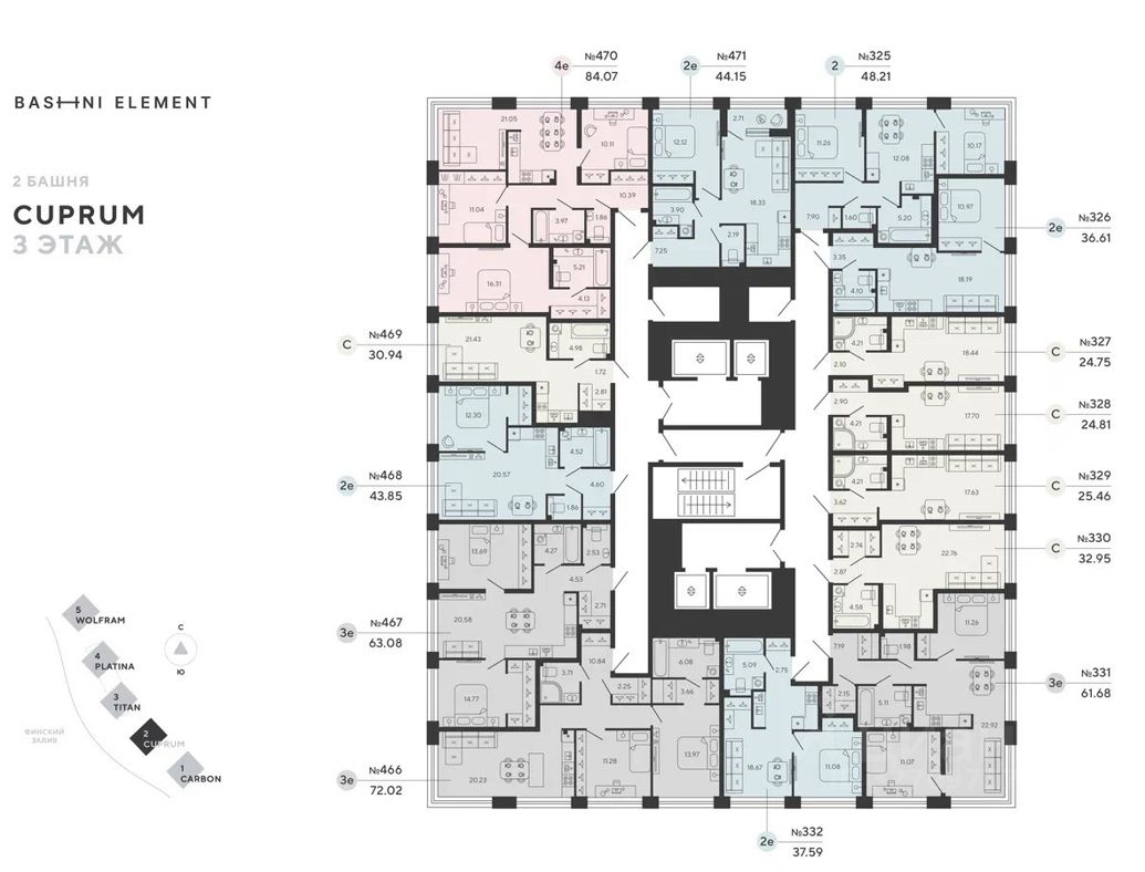 Квартира 328 в корпусе Cuprum проекта бизнес-класса "BASHNI ELEMENT"
