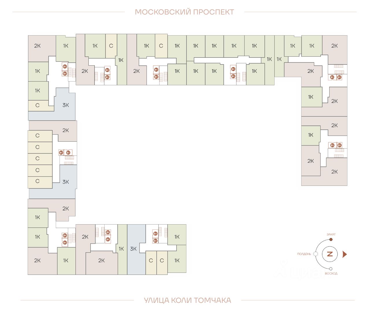 - Всего 505 квартир, от 25 до 130 м².