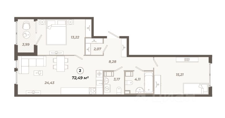 - Функциональная планировка с возможностью зонирования.