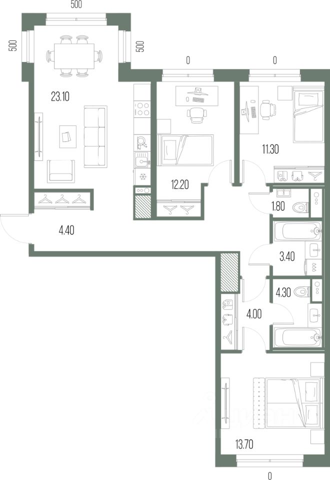 Продаётся 3-комнатная квартира в строящемся доме (Секции P1, P2, N6), срок сдачи: II-кв. 2029, общей площадью 89.3 кв.м., на 4 этаже. Новый жилой комплекс "ЛЕГЕНДА на Охте" от застройщика "LEGENDA Intelligent Development" расположен по адресу: Россия, Санкт-Петербург, Магнитогорская улица