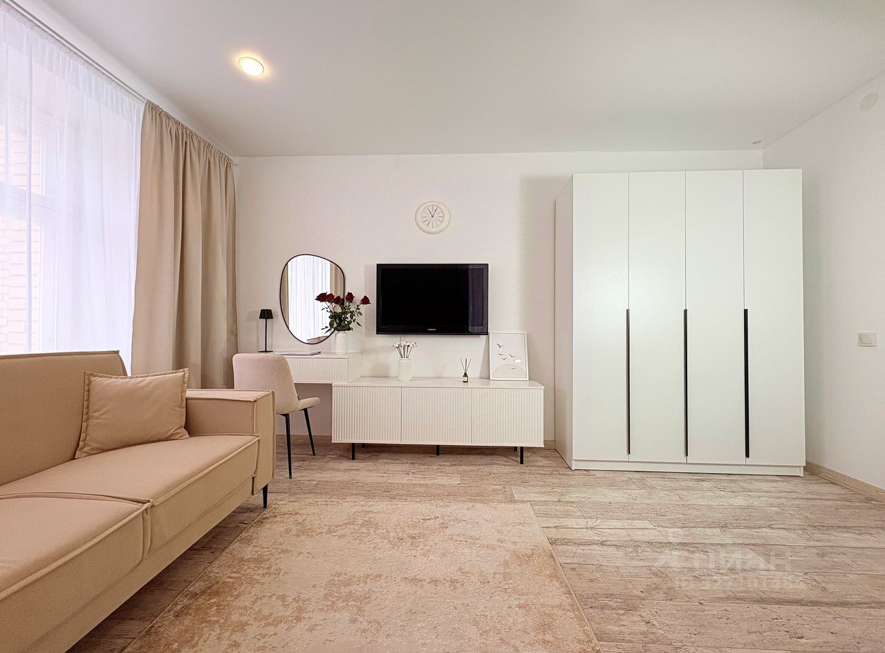 Свежий ремонт. В квартире только что в январе 2026 года сделан свежий косметический ремонт, все стены оклеены белыми обоями под покраску, белые матовые натяжные потолки, на полу ламинат и плитка. В кухне новый кухонный гарнитур, новая обеденная группа с круглым столом и 4 мягкими стульями, новая варочная панель, вытяжка и духовка (духовкой ни разу не пользовались), а также остаются холодильник и микроволновая печь. В комнате практически вся мебель тоже новая - шкаф для одежды, ТВ-тумба, стол, современный раскладывающийся диван, а также двуспальная кровать Икея с местами для хранения, матрасом Аскона и большой телевизор. В ванной комнате есть водонагреватель на случай отключения горячей воды, стиральная машина, а ванна покрыта свежим акриловым покрытием. Во всех комнатах новые тюль и шторы. Вся мебель, техника и декор остаются покупателю.