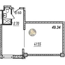 - Общая площадь квартиры 49.34 м2