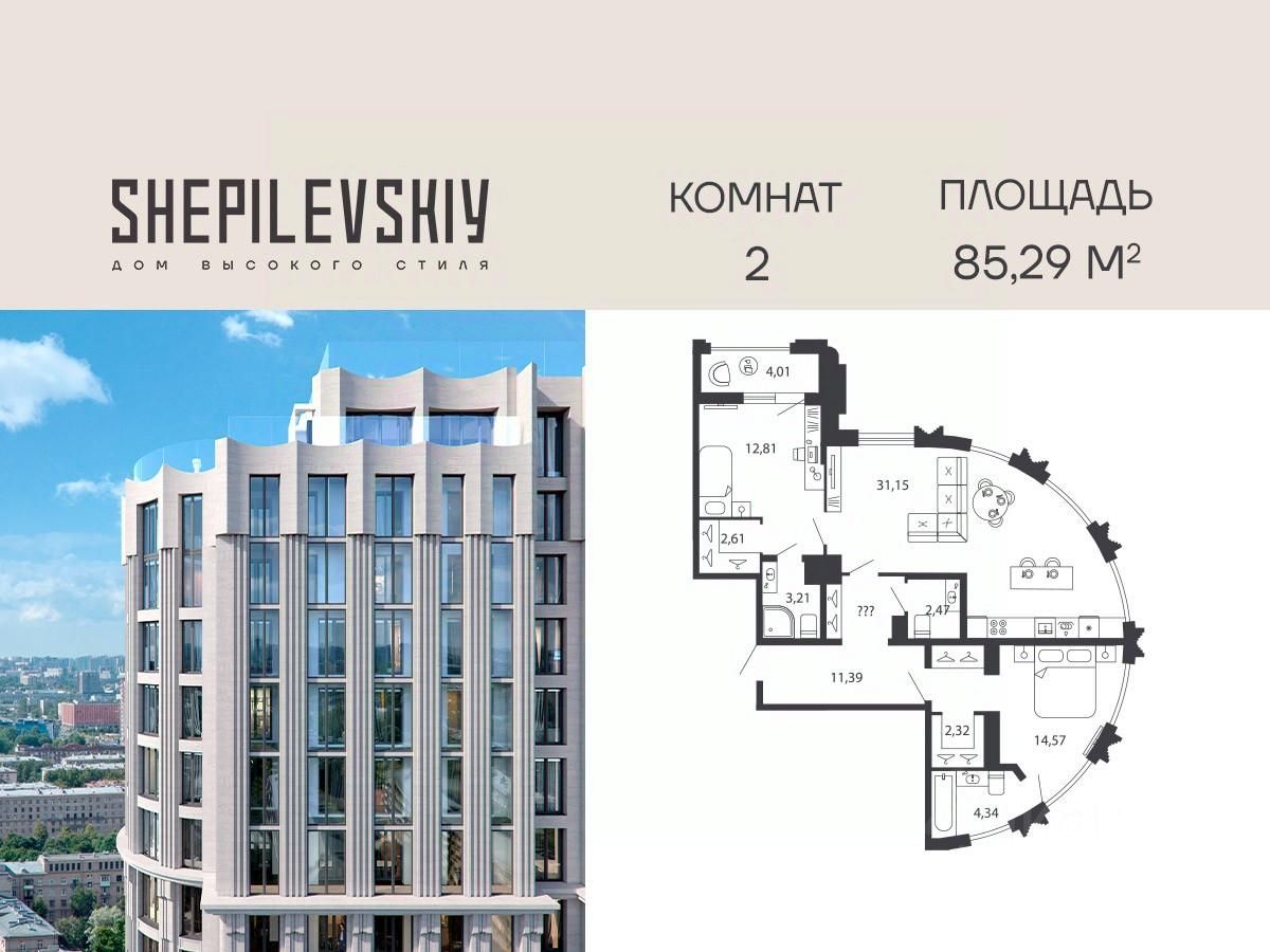 2-ком. квартира 76 на 18 этаже в секции 1 Дома SHEPILEVSKIY (Шепилевский)