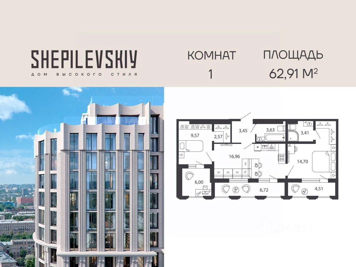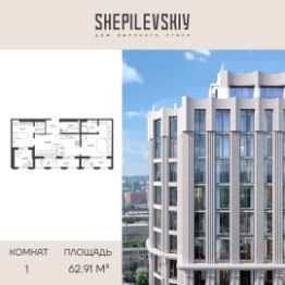 1-ком. квартира 78 на 19 этаже в секции 1 Дома SHEPILEVSKIY (Шепилевский)