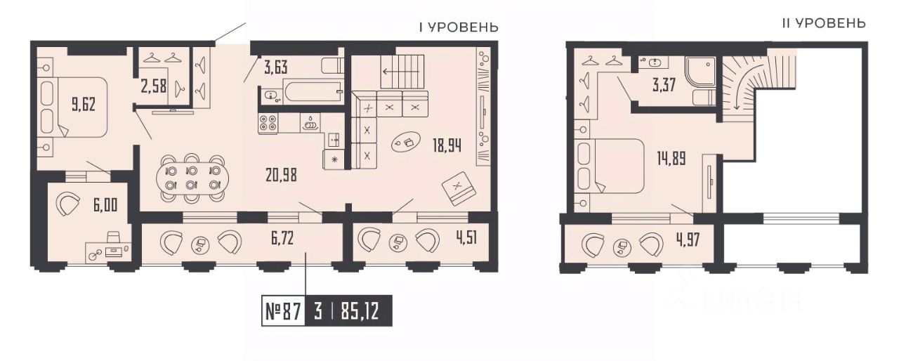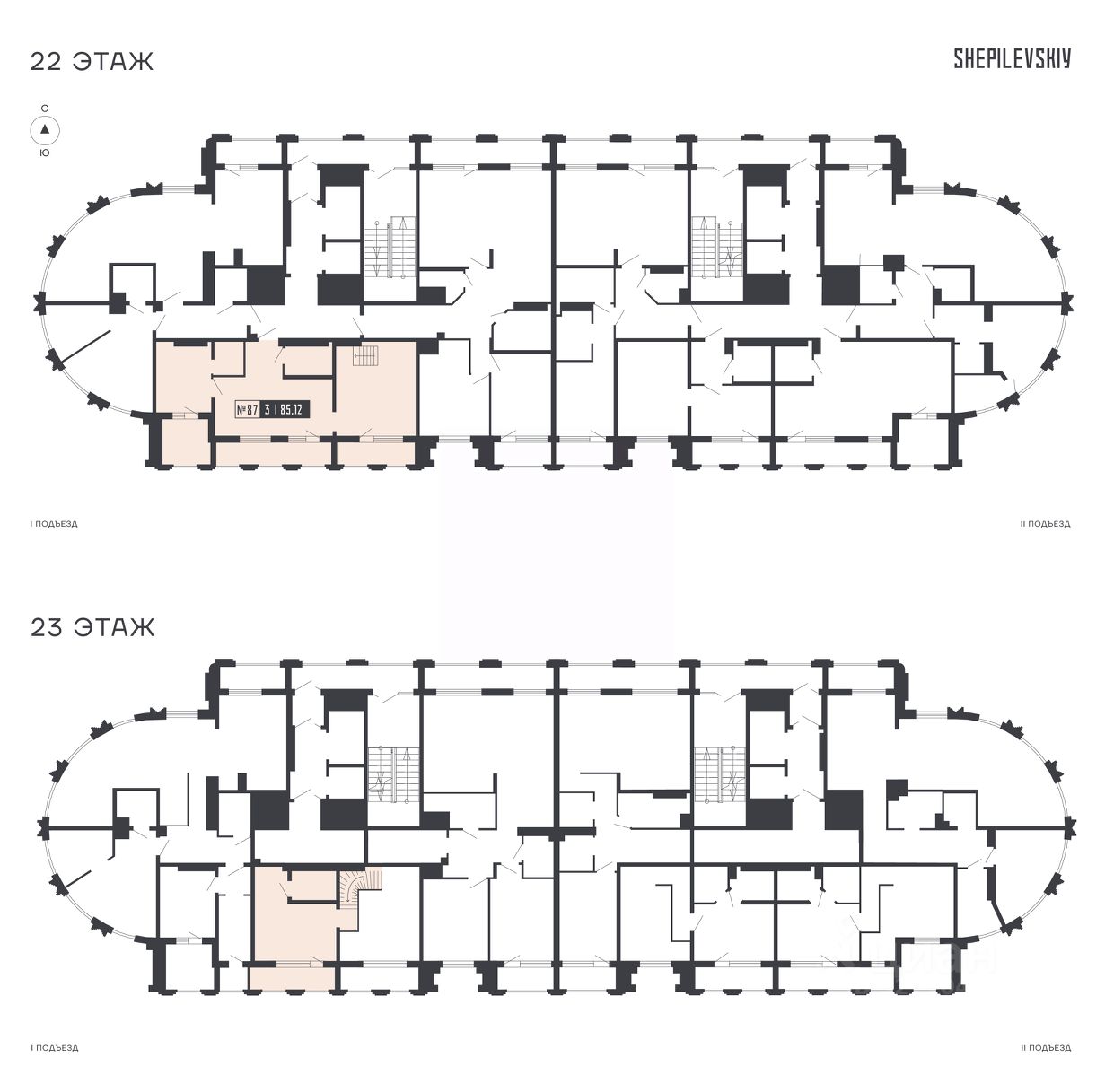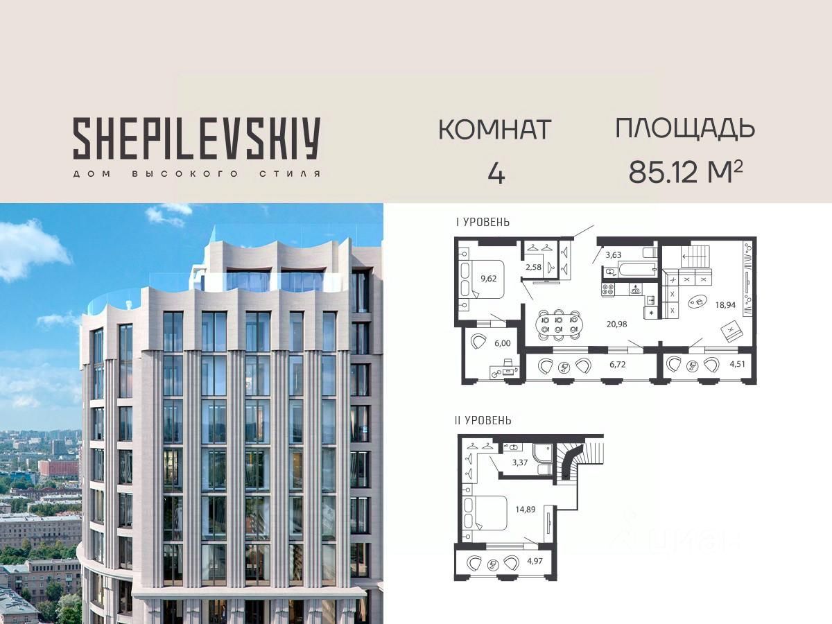 3-ком. квартира 87 на 22 и 23 этаже в секции 1 Дома SHEPILEVSKIY (Шепилевский)