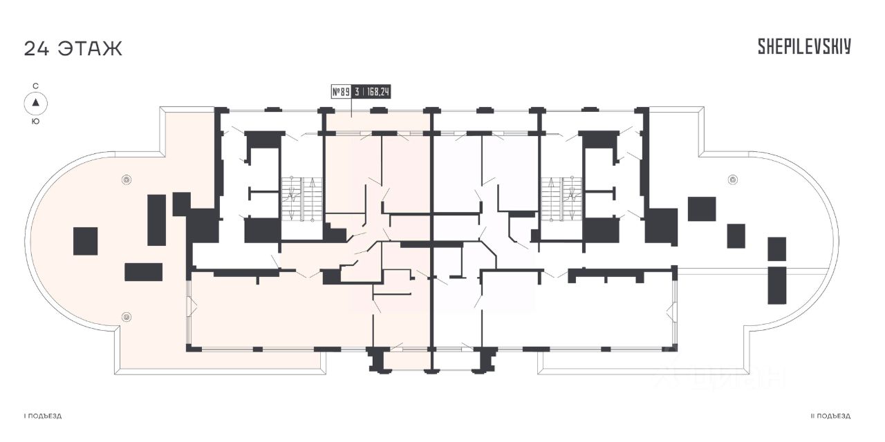 3-ком. квартира 89 на 24 этаже в секции 1 Дома SHEPILEVSKIY (Шепилевский)