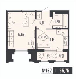 1-ком. квартира 162 на 17 этаже в секции 2 Дома SHEPILEVSKIY (Шепилевский)