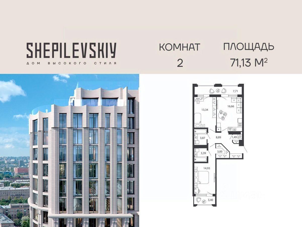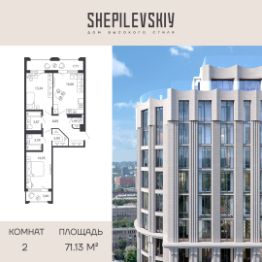 2-ком. квартира 167 на 18 этаже в секции 2 Дома SHEPILEVSKIY (Шепилевский)
