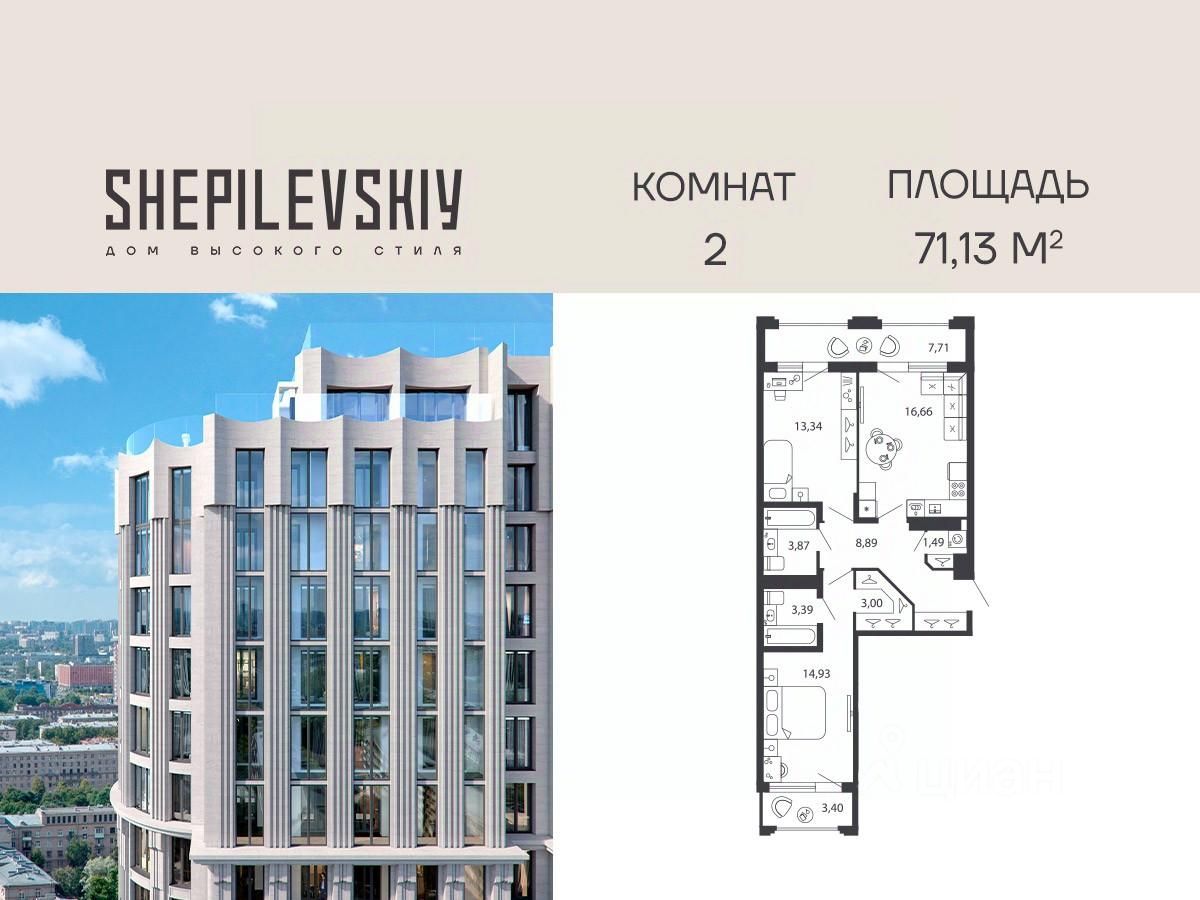 2-ком. квартира 171 на 19 этаже в секции 2 Дома SHEPILEVSKIY (Шепилевский)