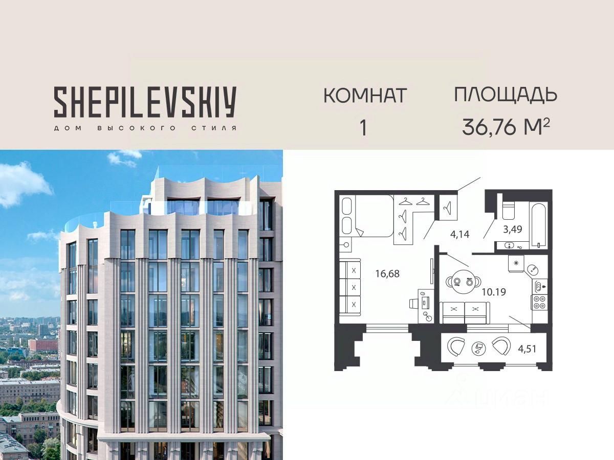 1-ком. квартира 174 на 20 этаже в секции 2 Дома SHEPILEVSKIY (Шепилевский)