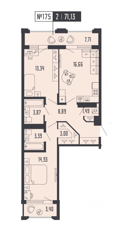 2-ком. квартира 175 на 20 этаже в секции 2 Дома SHEPILEVSKIY (Шепилевский)