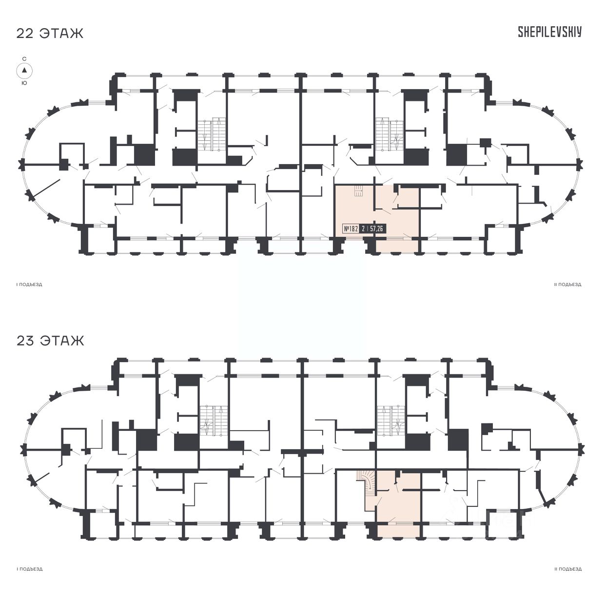 2-ком. квартира 182 на 22 и 23 этаже в секции 2 Дома SHEPILEVSKIY (Шепилевский)