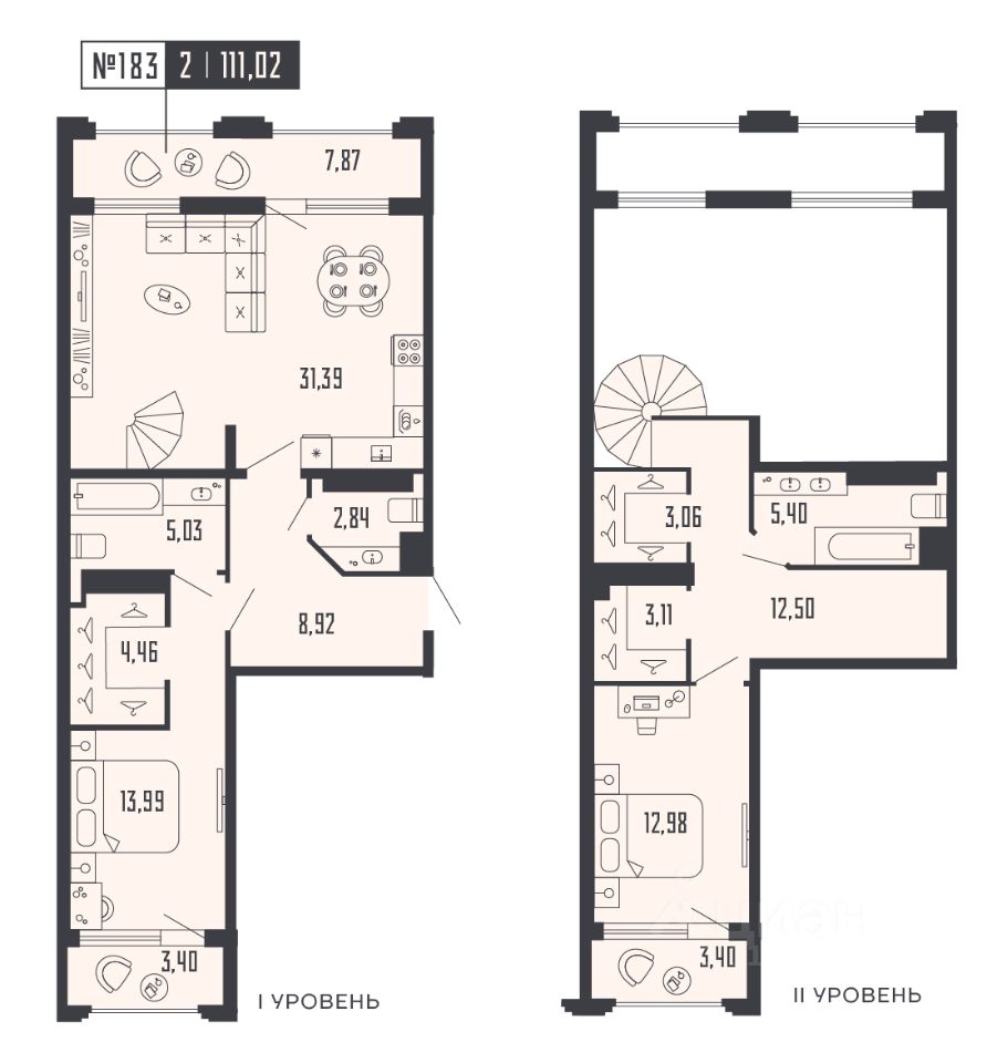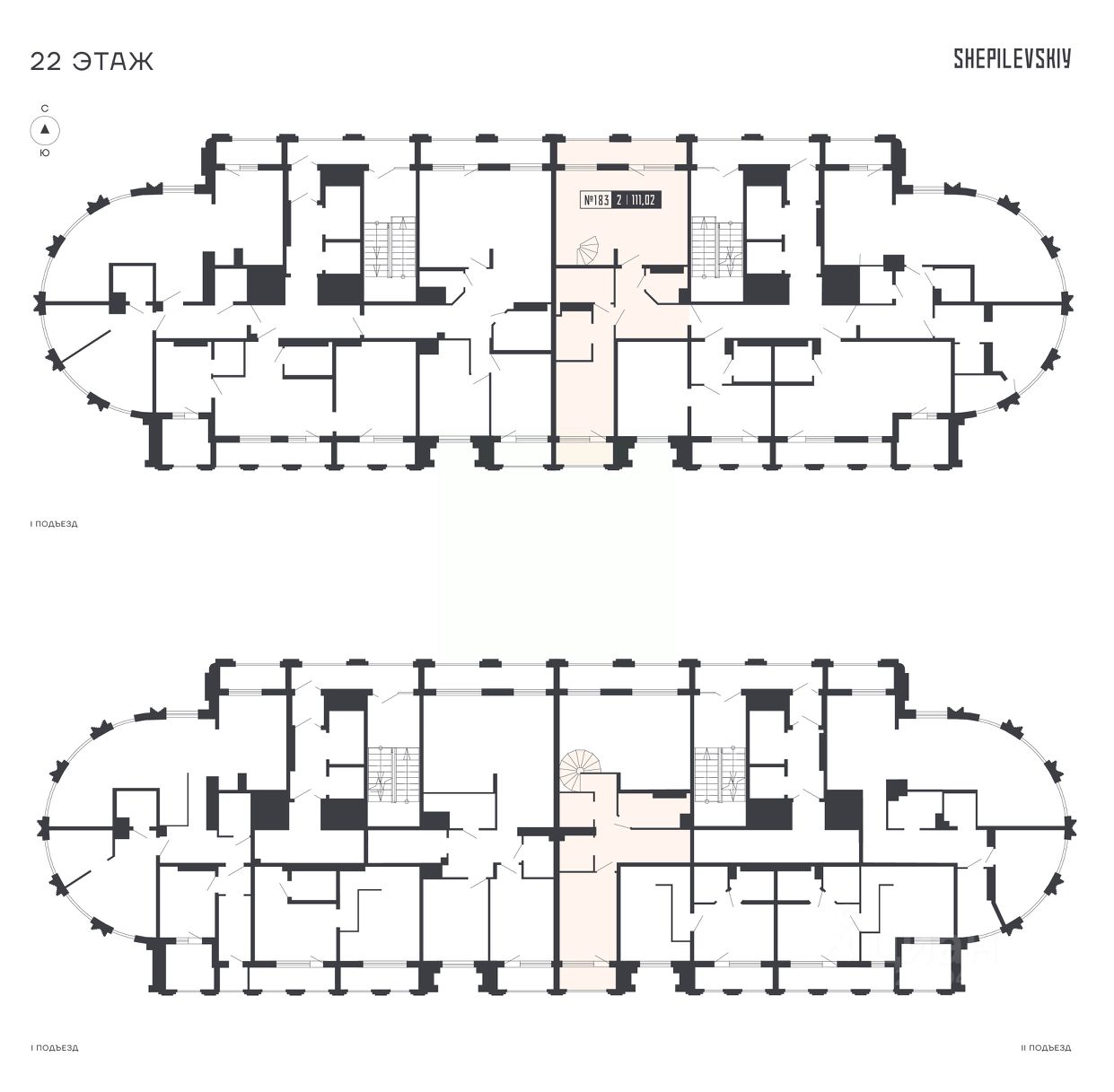 2-ком. квартира 183 на 22 и 23 этаже в секции 2 Дома SHEPILEVSKIY (Шепилевский)