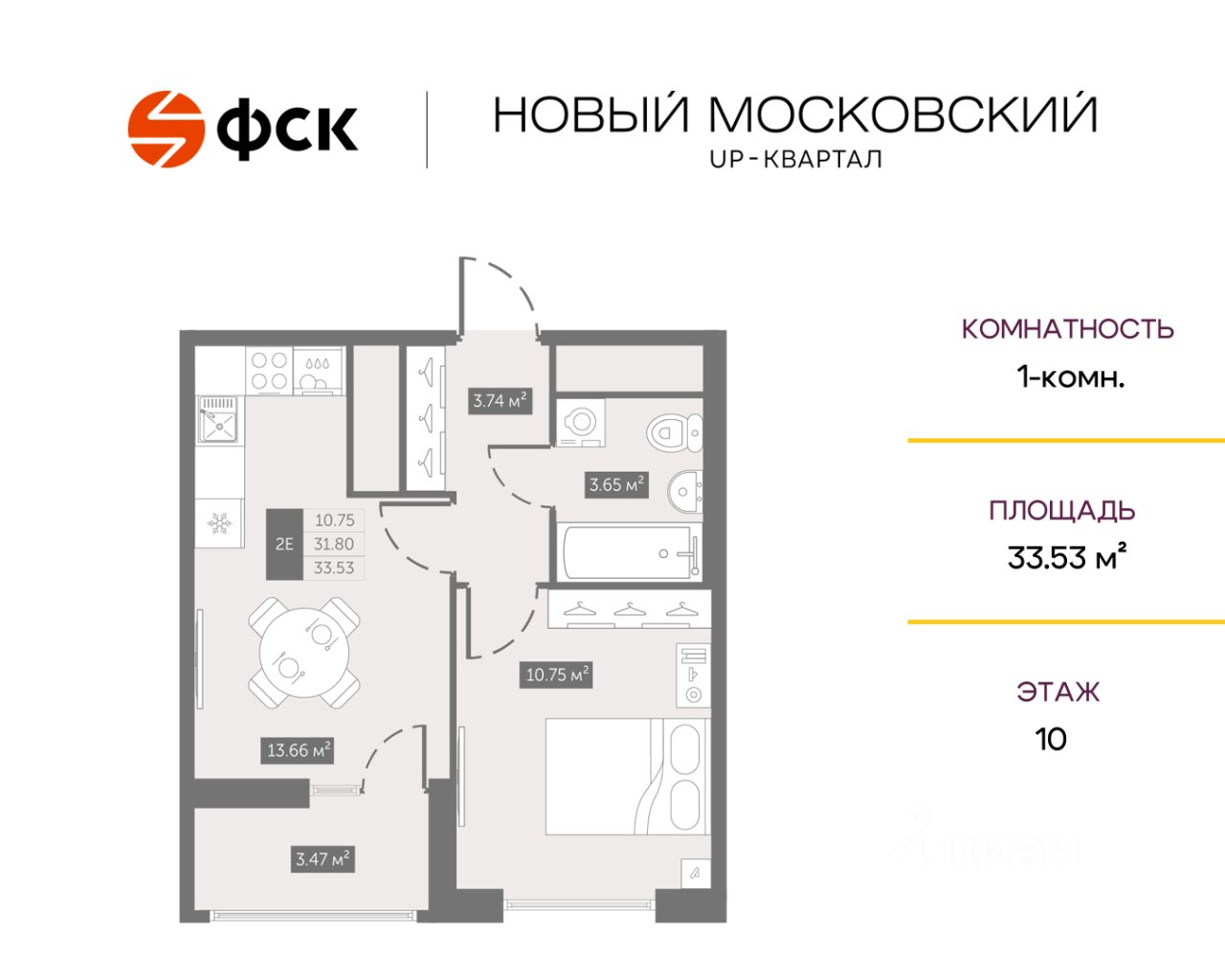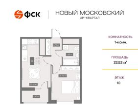 Прямая продажа от застройщика. Беспроцентная рассрочка. 1-к квартира в ЖК Квартал "Новый Московский" на 10-м этаже. Общая площадь 33,6. Без отделки.