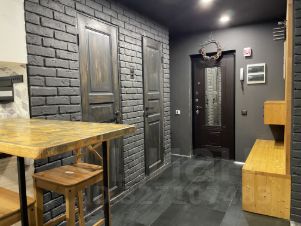 Была сделана перепланировка, убрана одна НЕ несущая стена. После реализовано свое видение помещения.