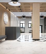 • Парадные оформлены с использованием декоративной штукатурки и керамогранита VITRA, что обеспечивает не только эстетичность, но и долговечность.