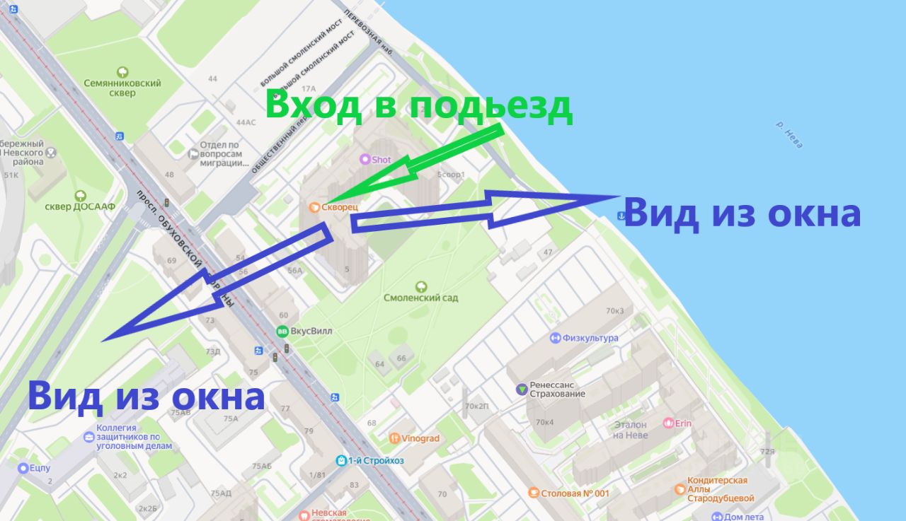 Из окон комнаты открывается прекрасный вид практически на весь город, купола соборов, закат над Лахта центром.