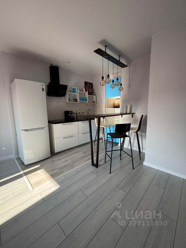 Кухня (ИКЕА) оборудована современной техникой и барной стойкой, что делает пространство удобным как для приготовления пищи, так и для общения с семьёй или друзьями.