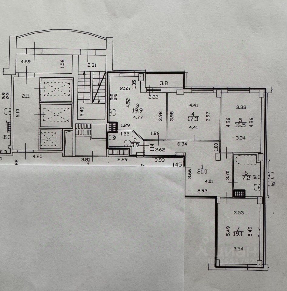 Комнаты: 19.1 м², 16.5 м², 17.3 м² — изолированные, светлые и просторные