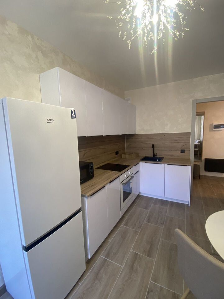 Кухня-гостиная: Встроенная кухня: плита, дух. шкаф, посудомоечная машина, микроволновка, холодильник, большой раскладной угловой диван, комод, стол , стулья и тд+