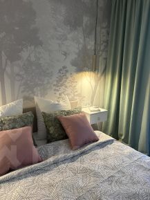Качественные отделочные материалы известных марок. Кровать, матрас, подушки и одеяла- Аскона. Все необходимое уже в наличии, встроенная кухонная техника: холодильник, посудомоечная машина, духовка , варочная панель и вытяжка. Микроволновая печь и чайник. В ванной теплые полы, стиральная машина. В коридоре так же теплые полы. Уютный текстиль. В гардеробной комнате эргономично продумано пространство.