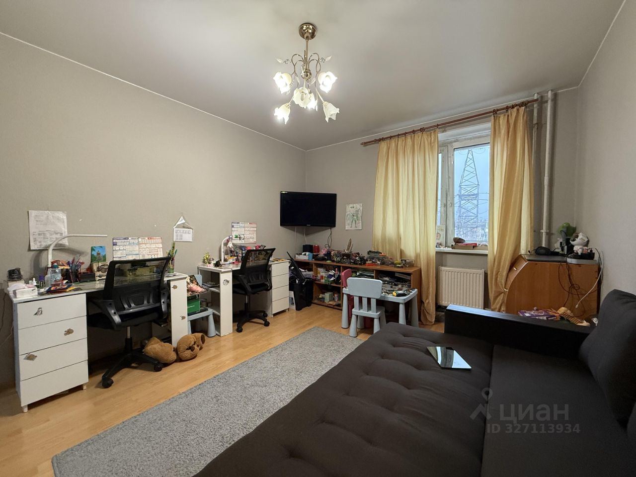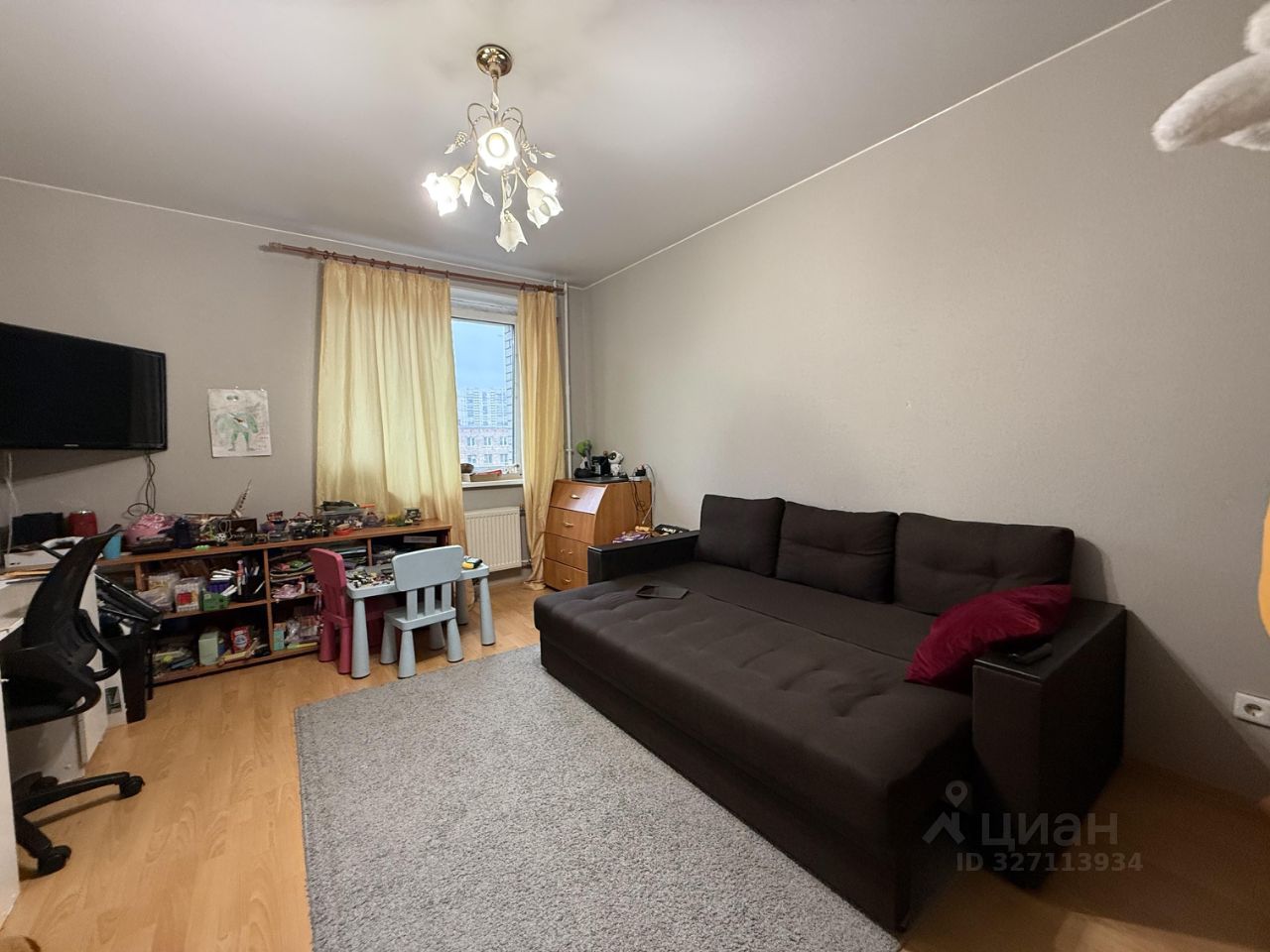 просторная комната, площадью 18.3 кв м, удобной для зонирования и расстановки мебели прямоугольной формы (5.1м х 3.6 м),
