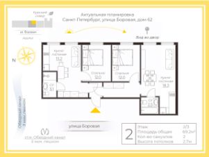 Арт. 131441310 В продаже — две отдельные однокомнатные квартиры площадью 33 и 34 кв. м, объединённые одним кадастровым номером. Общая площадь — 69 кв. м.