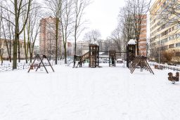 Детская и взрослая поликлиники, районный центр реабилитации. Для прогулок рядом есть 2 больших зеленых сквера.