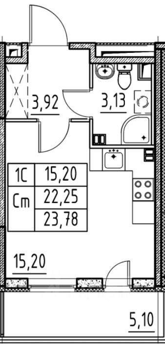 - ШИРОКАЯ студия (с возможностью зонирования)