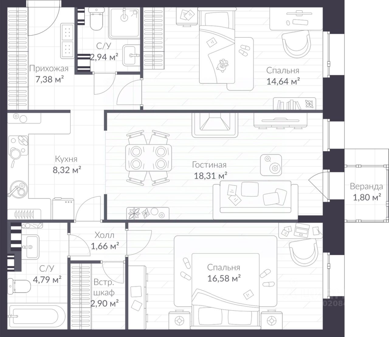 Продаётся 2-комнатная квартира в сданном доме (Корпус 11 (секция 16,17)), срок сдачи: II-кв. 2022, общей площадью 79.4 кв.м., на 3 этаже. Возможно ли, живя в городе, пользоваться преимуществами загородной жизни? Сочетать карьерные возможности с тишиной, пением птиц, свежим морским воздухом? Да - если вы живёте в VEREN VILLAGE стрельна.