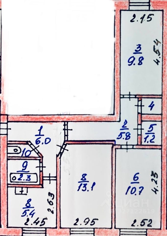 5,4 м²