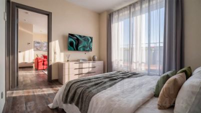 Квартира находится на восьмом этаже, общая площадь 58,7 м², высота потолков 3,1 метра. Отличная планировка: изолированная спальня и большая кухня-гостиная с прекрасным видом из окон на Лахта Центр, раздельные санузлы. С открытой террасы открывается шикарный вид на закатное солнце. Квартира в идеальном состоянии, выполнен ремонт высокого класса.