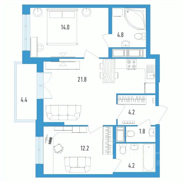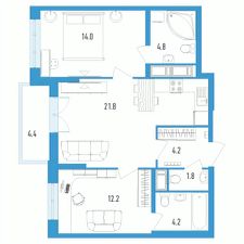 Продаётся 2-комнатная квартира в сданном доме (Головнина, 3к1), срок сдачи: II-кв. 2023, общей площадью 64.3 кв.м., на 8 этаже.